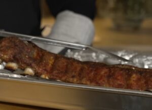 - Check for doneness: The ribs are done when the meat is tender and begins pulling away from the bone.